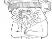El elemento central del tocado está roto, pero probablemente es la misma forma que se presenta en la pieza MCO 1991-t/14 (cf. Sellen 2002: 142, fig. 4.107), es decir el glifo milpa.